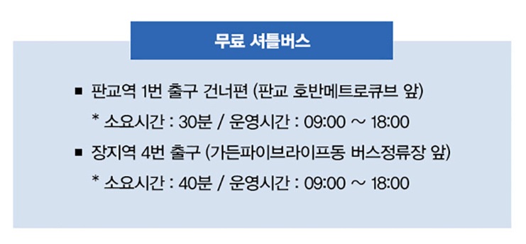 참관객 방문의 편의를 위해 운영하는 무료 셔틀버스 안내드립니다.